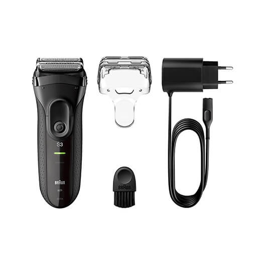 La afeitadora eléctrica recargable de láminas Braun Series 3 ProSkin proporciona un afeitado más rápido a la vez que deja una gran sensación de bienestar en la piel. Los 3 elementos de corte sensibles a la presión se adaptan a los contornos faciales y la tecnología MicroComb especializada atrapa más pelo desde la primera pasada. Tres elementos de corte que se mueven independientemente se adaptan a cada contorno facial y garantizan una experiencia de afeitado suave. El mango ergonómico antideslizante con el diseño de puntos de goma típico de Braun proporciona un manejo seguro incluso cuando el mango está mojado o mientras aclaras la afeitadora con agua corriente. Incorpora dos finas ranuras espaciadas de manera uniforme que rodean una recortadora intermedia que se mueve independiente. Este sistema atrapa más pelo con cada pasada y agiliza el afeitado. La diferencia con otras afeitadoras es notoria, sobre todo en el terrible examen de la barba de tres días. Las dos láminas y la recortadora intermedia integrada logran un afeitado progresivo y apurado. Juntos cortan eficazmente tanto el pelo corto como el largo en cada pasada incluso en barbas difíciles de 3 días.
