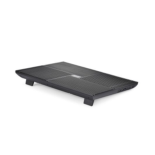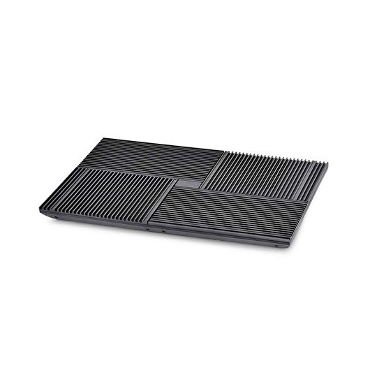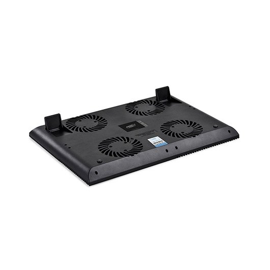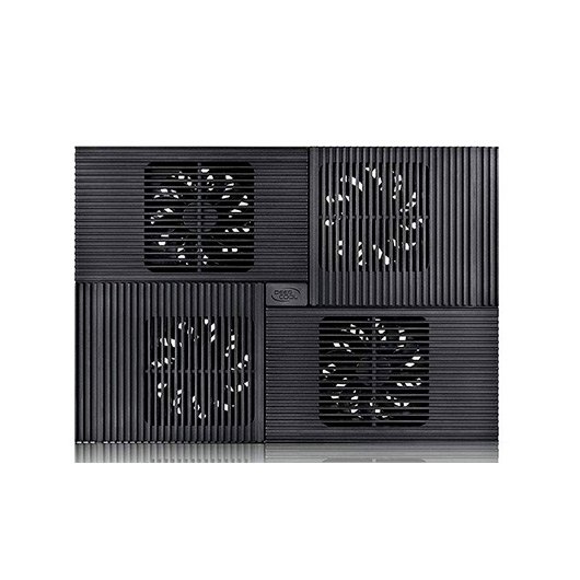 Todo el panel se divide en cuatro partes con 4 ventiladores incorporados abajo. Con diseño de flujo de aire vertical, el flujo de aire se destinará a cuatro direcciones. El aluminio es un material eficiente para la disipación térmica. Cuatro piezas de paneles de aluminio están anodizados en color negro para proporcionar una sensación de frío en apariencia. El diseño de la iniciativa de 4 ventiladores que soplan en 4 direcciones diferentes hace un uso completo de la zona de disipación, y también cubre todos los puntos de calentamiento de su ordenador portátil. Este cooler puede enfriar los puntos más calientes sin importar si es el área de la unidad de disco duro o la tarjeta VGA.