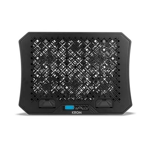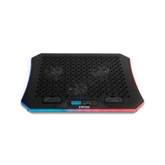 Krom Kooler es una avanzada base refrigeradora RGB para portátil que te ayudará a conseguir la ventilación perfecta para mantener siempre tu equipo a la temperatura más adecuada, gracias a sus seis silenciosos ventiladores. Krom Kooler es el soporte perfecto para disfrutar de las mejores partidas. Obtén con Krom Kooler la refrigeración de portátil que necesitas. Esta base de refrigeración gaming ha sido construida con materiales de alta calidad para soportar los portátiles más potentes con un tamaño de hasta 19 . Con un diseño innovador con RGB dinámico alrededor del contorno de la base, pudiendo elegir entre 10 modos de iluminación distintos, protegerás tu portátil del sobrecalentamiento otorgándole la estética gaming que deseabas. Su resistente superficie antideslizante hará que te olvides de preocuparte por la estabilidad y gracias a su altura regulable podrás jugar, estudiar o trabajar con la máxima comodidad. Esta base refrigeradora cuenta con 6 ventiladores de alta eficiencia y bajo nivel sonoro. Podrás elegir entre 6 niveles de velocidad de los ventiladores mediante sus botones, situados en la parte frontal. Activa y desactiva digitalmente los ventiladores según las necesidades que tu equipo vaya teniendo en cada momento y concéntrate en ganar la partida. Krom Kooler es una base RGB para portátiles que cuenta con un HUB USB integrado para conectar tus periféricos extra, como un teclado o ratón adicional. Además, integra un práctico soporte para el móvil extraíble, de manera que podrás tenerlo todo controlado.