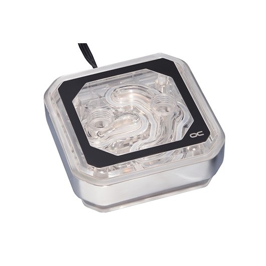 El nuevo bloque de agua de CPU Alphacool Eisblock XPX Aurora ofrece un rendimiento fantástico gracias al diseño de rampa patentado, además de una excelente calidad. El nuevo diseño Aurora combinado con la iluminación digital RGB direccionable ofrece muchas posibilidades para una iluminación sobresaliente. El llamado sistema de rampa asegura un flujo uniforme de agua dentro del enfriador y se sienta frente a la placa del difusor. Esto asegura que el agua se presione uniformemente a través de la placa difusora, que a su vez empuja el agua uniformemente sobre la base de enfriamiento. Los canales de enfriamiento en la base del enfriador de la CPU también se han ampliado a 34 x 32 mm para acomodar los DIE de CPU en constante crecimiento. Esto es especialmente adecuado para procesadores multi-core con 4, 6, 8 o incluso 12 y más núcleos. Para que el calor de la CPU se pueda transferir al agua lo más rápido posible se pueden encontrar 81 aletas en la placa de enfriamiento para garantizar la máxima difusión del calor.