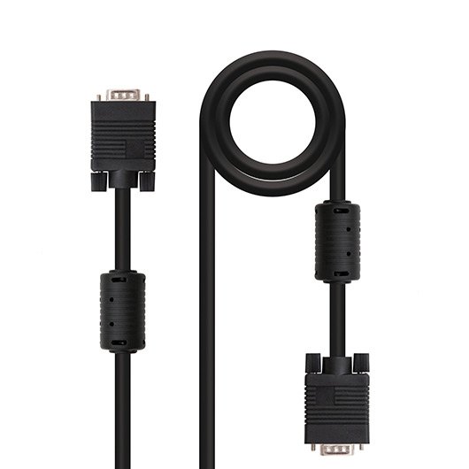 Conector tipo D-sub HDB15 macho en ambos extremos. 3 hilos coaxiales (doble apantallado) para señales de color de alta frecuencia más 4 hilos adicionales para la sincronización. Doble apantallado para todos los hilos para evitar pérdida de datos e interferencias electromagnéticas (EMI). Incluye además ferrita en ambos extremos para evitar interferencias de alta frecuencia. Resolución máxima 2048 X 1536.