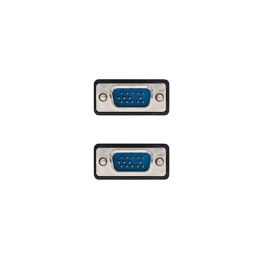 Conector tipo D-sub HDB15 macho en ambos extremos. 3 hilos coaxiales (doble apantallado) para señales de color de alta frecuencia más 4 hilos adicionales para la sincronización. Doble apantallado para todos los hilos para evitar pérdida de datos e interferencias electromagnéticas (EMI). Incluye además ferrita en ambos extremos para evitar interferencias de alta frecuencia. Resolución máxima 2048 X 1536.