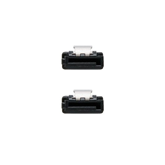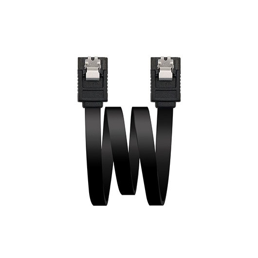 Cable SATA datos con anclajes para una conexión segura y acodado en un extremo para disco duro u otro dispositivo con interfaz SATA.