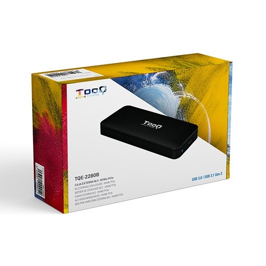 Caja externa para SSD M.2 NVMe PCIe. Conexión USB-C (USB 3.1 Gen2). Compatible con SSD NVMe PCIe.