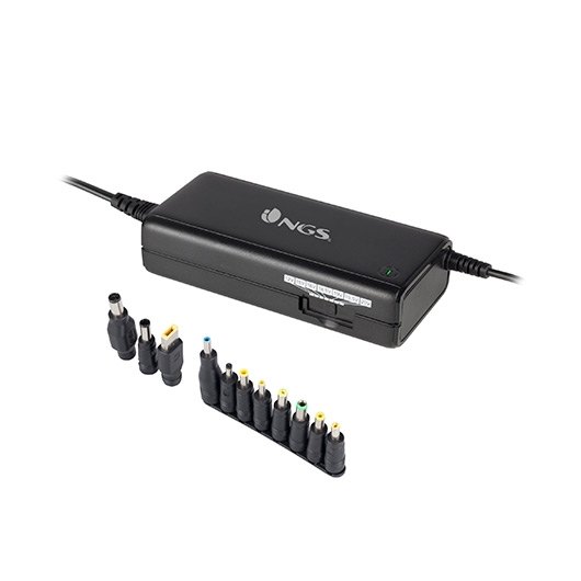 Cargador universal compatible con la mayoría de los portátiles del mercado. Se trata de un cargador manual para ordenadores portátiles con potencias de hasta 90W. Incluye protección frente a sobrevoltaje, cortocircuito y sobrecalentamiento. Diseño compacto, fácil de transportar y ocupa poco espacio. Está equipado con un indicador LED que se ilumina cuando el cargador está conectado a la corriente eléctrica. Posee además un selector de corriente con el que podrás elegir diferentes tensiones, en función de las necesidades de cada portátil (12-20 V). Incluye 11 conectores intercambiables que aseguran la compatibilidad con la mayoría de las marcas y dispositivos que existen en el mercado.