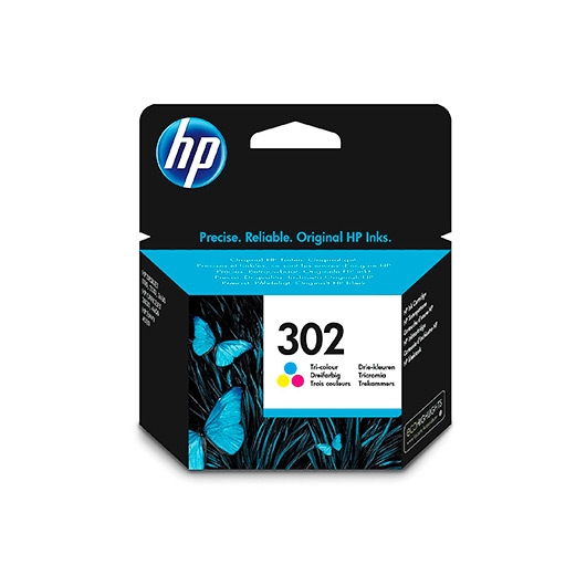 HP 302 Tri-color Original Ink Cartridge. Colores de impresión: Cian, Magenta, Amarillo, Tipo de cartucho de tinta: Estándar, Capacidad: 4 ml. Ancho: 10,3 cm, Profundidad: 3,63 cm, Altura: 11,4 cm. Ancho del paquete: 11,3 cm, Profundidad del paquete: 3,7 cm, Altura del paquete: 11,5 cm