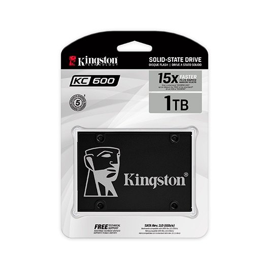 El KC600 de Kingston es una unidad SSD de máxima capacidad diseñada para ofrecer un rendimiento excelente y optimizado para aportar una capacidad de respuesta funcional del sistema con increíbles tiempos de arranque, carga y transferencia. Se presenta en un formato de 2,5 con interfaz SATA Rev 3.0 retrocompatible. El KC600 utiliza la tecnología más avanzada NAND TLC 3D e incorpora un sofisticado paquete de seguridad que incluye el cifrado de hardware AES de 256 bits, TCG Opal y eDrive. Alcanza velocidades de lectura/escritura de hasta 550/520 MB/s y puede almacenar sin dificultades grandes capacidades de datos. Está disponible en un paquete que incluye todo lo necesario para la fácil y rápida instalación y actualización en ordenadores de sobremesa y portátiles.