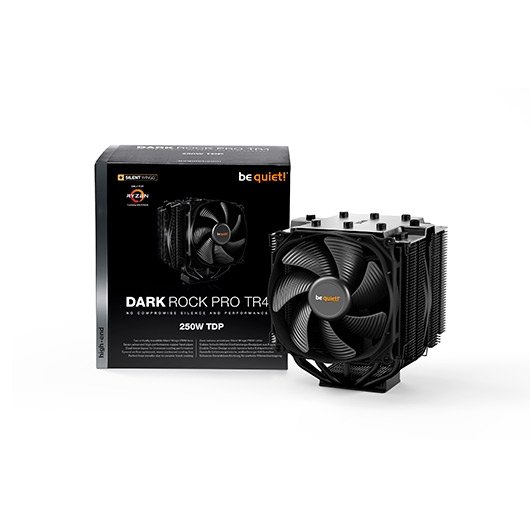 Dark Rock Pro TR4 ofrece una enorme capacidad de refrigeración de 250 W TDP y un funcionamiento prácticamente inaudible. Excelente para sistemas sobreacelerados y estaciones de trabajo exigentes. ¡Sin concesiones en cuanto a silencio y rendimiento para sistemas sobreacelerados y aplicaciones gráficas exigentes! Dark Rock Pro TR4 está diseñado solo para AMD TR4 y ofrece una impactante potencia de 250 W TDP. Está equipado con siete tubos termosifón de 6 mm de última generación que maximizan la conductancia térmica. Las aletas de refrigeración con flujo de aire optimizado y perfil ondulado con puntitos en la superficie incrementan la circulación del aire. El revestimiento especial en color negro con partículas de cerámica permite una perfecta transferencia de calor. Incluye dos disipadores térmicos de aluminio. Los recortes mejoran su compatibilidad con RAM. Dos ventiladores vienen preinstalados. También se puede añadir otro ventilador de 120 mm para una refrigeración aún mejor. El kit de montaje para el refrigerador Dark Rock Pro TR4 es completamente negro, con lo que encaja a la perfección con el diseño en negro del propio refrigerador. Puede instalar cómodamente el refrigerador en la placa base desde arriba. La cubierta de aluminio cepillado con acabado con corte de diamante añade un toque de elegancia a este refrigerador de gama alta.