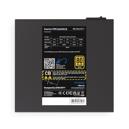 FUENTE DE ALIMENTACION ATX 650W ENDORFY SUPREMO FM5 GOLD 80 GOLD FULL MODULAR VENT 120MM