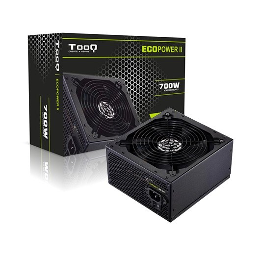 Ecopower II es la nueva generación de las fuentes Ecopower de TooQ. La nueva versión de fuentes incluye ACTIVE PFC (PFC ACTIVO, PF>0.99) de alta calidad, por lo que se garantiza al menos un 78% de eficiencia. Con la tecnología PFC Activo, la fuente produce mucho menos calor que una fuente con PFC Pasivo, con lo cual se puede prolongar la vida útil de la fuente. Además, la serie Ecopower II lleva ventilador súper silencioso de alta calidad, doble raíl +12V muy estable y protecciones del sistema electrónico de alta tecnología.