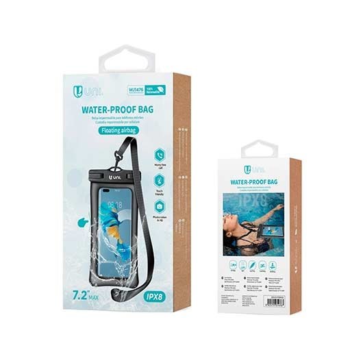 FUNDA IMPERMEABLE UNI MOVIL HASTA 7.2 TACTIL IPX8 TPU ABS 22*11,5CM NEGRO