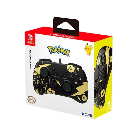 GAMEPAD HORI CONTROLLER MINI PIKACHU BLACK GOLD Para Nintendo Switch Cableado