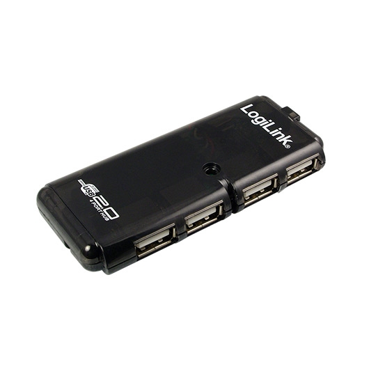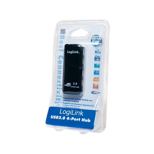 LogiLink 4-Port USB 2.0 Hub. Velocidad de transferencia de datos: 480 Mbit s, Certificación: CE, FCC, RoHS. Color del producto: Negro. Interfaz: USB 2.0