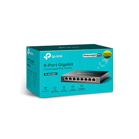 TP-LINK TL-SG108E. Capa del interruptor: L2. Puertos tipo básico de conmutación RJ-45 Ethernet: Gigabit Ethernet (10 100 1000). Estándares de red: IEEE 802.1ab, IEEE 802.1p, IEEE 802.1Q, IEEE 802.3, IEEE 802.3u, IEEE 802.3x. Tabla de direcciones MAC: 8000 entradas, Capacidad de conmutación: 16 Gbit s, Rendimiento: 11,9 Mpps. Color del producto: Negro, Certificación: FCC, CE, RoHS