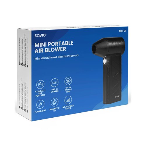 MINI-LIMPIADOR DE AIRE SAVIO MD-01 BLACK RECARGABLE COMPACTO USB-C 100 000RPM MAGNETICA