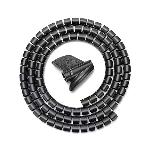 Organizador de cables en espiral con capacidad de hasta 25mm de diámetro. Fabricado en plástico de alta resistencia y gran flexibilidad. Muy fácil de instalar, solo se requiere unos minutos. Se incluye un adaptador para facilitar la instalación.