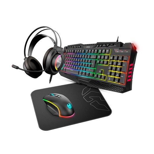 Con Kritic RGB Rainbow Gaming Kit lo tendrás todo, desde un práctico teclado anti-ghosting con teclas multimedia, unos cómodos auriculares estéreo con micrófono integrado, hasta un ergonómico ratón de 6400 DPI y una amplia alfombrilla. Un pack perfecto para jugones que suma, además, una espectacular iluminación a tus partidas. Los auriculares brindan un envolvente sonido estéreo, de buena calidad, mediante sus drivers de 50 mm, teniendo así en todo momento el entorno de juego controlado. Para que nada te distraiga, podrás ajustar fácilmente su volumen gracias a la rueda de su auricular izquierdo. Con su diadema acolchada y ajustable, no notarás las largas e intensas horas frente a la pantalla. Además, incluye un micrófono flexible que podrás adaptar para asegurar una buena comunicación. El teclado cuenta con una espectacular retroiluminación RGB, que dará a tu setup una estética gaming sobresaliente, pudiendo ajustar modo (Breath o Rainbow), brillo y velocidad como desees. Cuenta también con tecnología anti-ghosting, con la que podrás pulsar hasta 19 teclas a un mismo tiempo, pudiendo hacer cualquier acción con total libertad. Por otro lado, mediante una sencilla y fácil combinación, podrás intercambiar las teclas WASD con las de dirección. El ratón con una viva iluminación RGB, se ajustará perfectamente a tu mano gracias a su ergonómico diseño, compacto y ligero. Con cable mallado, para una mayor duración, su sensor óptico alcanza hasta los 6400 DPI, adaptándote a las exigencias de la partida. Completa tu setup con la alfombrilla, cuya amplia superficie de 320 x 270 x 3 mm te permitirá llevar a cabo cualquier movimiento. Su acabado speed, ideal para todo tipo de ratones, tanto ópticos como láser, te garantiza la precisión, seguridad y velocidad que buscas. Además, podrás disfrutar de ella durante mucho más tiempo gracias a sus bordes cosidos.