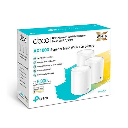 Equipado con la tecnología Wi-Fi 6, el Wi-Fi de malla para toda la casa Deco está diseñado para brindar un gran impulso en la cobertura, la velocidad y la capacidad total. Utiliza la última red Wi-Fi en malla para disfrutar de la red futura que se carga más rápido y se conecta más. Con señales más claras y fuertes mejoradas por BSS Color y Beamforming, Deco X20 aumenta el Wi-Fi doméstico más amplio. Las conexiones inalámbricas y el backhaul Ethernet opcional funcionan juntos para vincular las unidades Deco, proporcionando velocidades de red aún más rápidas y una cobertura verdaderamente perfecta. ¿Quieres más cobertura? Simplemente agrega otra Deco. El último 1024-QAM y la velocidad de símbolo más alta se combinan para aumentar las velocidades hasta 1.8 Gbps, ideal para tareas de uso intensivo de ancho de banda como juegos en la nube y video 4K UHD. Las familias disfrutarán de una transmisión en vivo envolvente con video impecable y audio claro sin almacenamiento en búfer. Wi-Fi 6 brinda conexiones Wi-Fi estables y receptivas al hogar hiperconectado del mañana. Disfruta de juegos con mayor capacidad de respuesta y chat de video sin interrupciones incluso cuando varios dispositivos compatibles están conectados y transmitiendo datos al mismo tiempo.