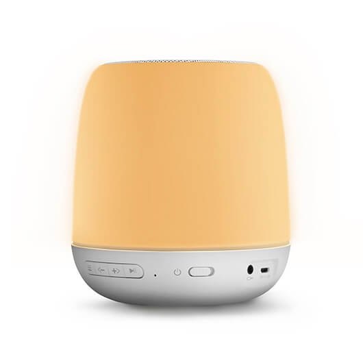 Altavoz radio-despertador con luz que aumenta gradualmente antes de que suene la alarma o tu emisora de radio favorita. Reproduce tu música mediante Bluetooth y decora la mesa de noche con sus luces LED RGB multicolor controladas con el panel táctil.