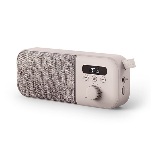 Esta radio portátil cuenta con sintonizador PLL de 50 memorias, antena FM interna y pantalla digital para ajuste fino además de conexión para auriculares. Además, dispone de una batería de litio recargable con 8 horas de autonomía. Llévate tu música siempre contigo y disfruta de tus programas de radio favoritos estés donde estés. Su batería de litio recargable te ofrece una autonomía de 8 horas para que tú sólo te preocupes de disfrutar. ¿Quién dijo que el diseño y la diversión no son compatibles? Esta radio portátil cuenta con un tamaño compacto ideal para colocarla en cualquier lugar y un diseño con líneas redondeadas y acabado en tela que le dan un aspecto ideal.