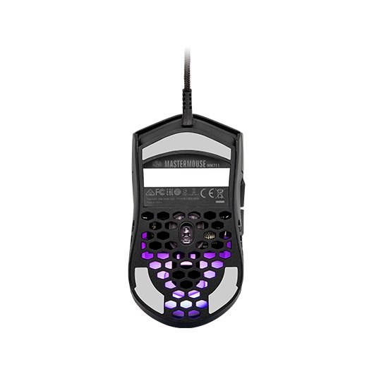 El MM711 es un ratón gaming verdaderamente innovador que hace más con mucho menos. Junto con todas las características de grado profesional que hacen que los ratones gaming Cooler Master sean mortales en combate, también han implementado un nuevo diseño de carcasa llamativo, un cable Ultraweave ligero y duradero y RGB, todo mientras mantienen el peso total del ratón a menos de 60 g. El resultado son movimientos más rápidos, sesiones de juego más largas, fatiga mínima y menos dolor de muñeca asociado con lesiones por estrés repetitivo. La nueva apariencia innovadora del MM711 es mucho más que eso. Al implementar un nuevo y novedoso diseño de carcasa de panal que es a la vez liviano y duradero, han reducido el peso total del ratón a 60 g. No más peleas con el ratón, y no más bajas perdidas debido a un rango de movimiento limitado en peso. Con el MM711, te olvidarás del dolor de las muñecas tras largas horas de juego. Apunta mejor y juega mejor, por más tiempo. El MM711 tiene una forma ambidiestra optimizada para jugadores diestros para mayor comodidad y funcionalidad, con dos botones laterales para acceder fácilmente a tus teclas personalizadas. Además, han agregado pies nuevos y mejorados hechos de PTFE puro para una durabilidad suprema y un máximo deslizamiento y capacidad de respuesta. Tu arma no te dejará tirado en plena batalla. Los interruptores OMRON de grado profesional son estándar para el MM711, alojados debajo de los botones izquierdo y derecho y clasificados para más de 20 millones de pulsaciones de teclas, o aproximadamente 1 millón de ragequits. Este ratón está equipado con pies de PTFE, digno de los mejores ratones gaming del mercado. Estos pies proporcionan un deslizamiento sin esfuerzo y una capacidad de respuesta superior que no se puede encontrar en otros ratones comunes. El MM711 viene con LED discretos en la rueda de desplazamiento y el logotipo para darle un toque de personalidad a tu juego. Y no es solo para un aspecto llamativo tampoco: los LED también pueden servir como un indicador útil para tu DPI asignado actualmente.