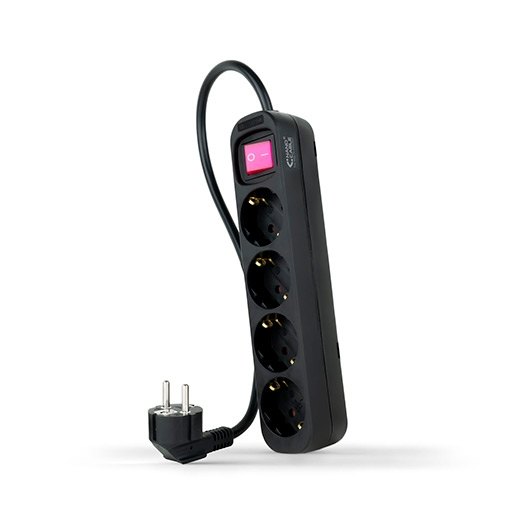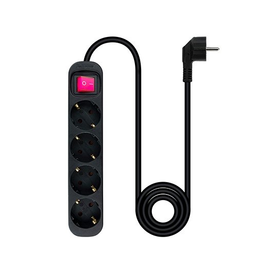 REGLETA 4 TOMAS 1.4M CON INTERRUPTOR NANOCABLE NEGRO 4 TOMAS 250V PROTECCION