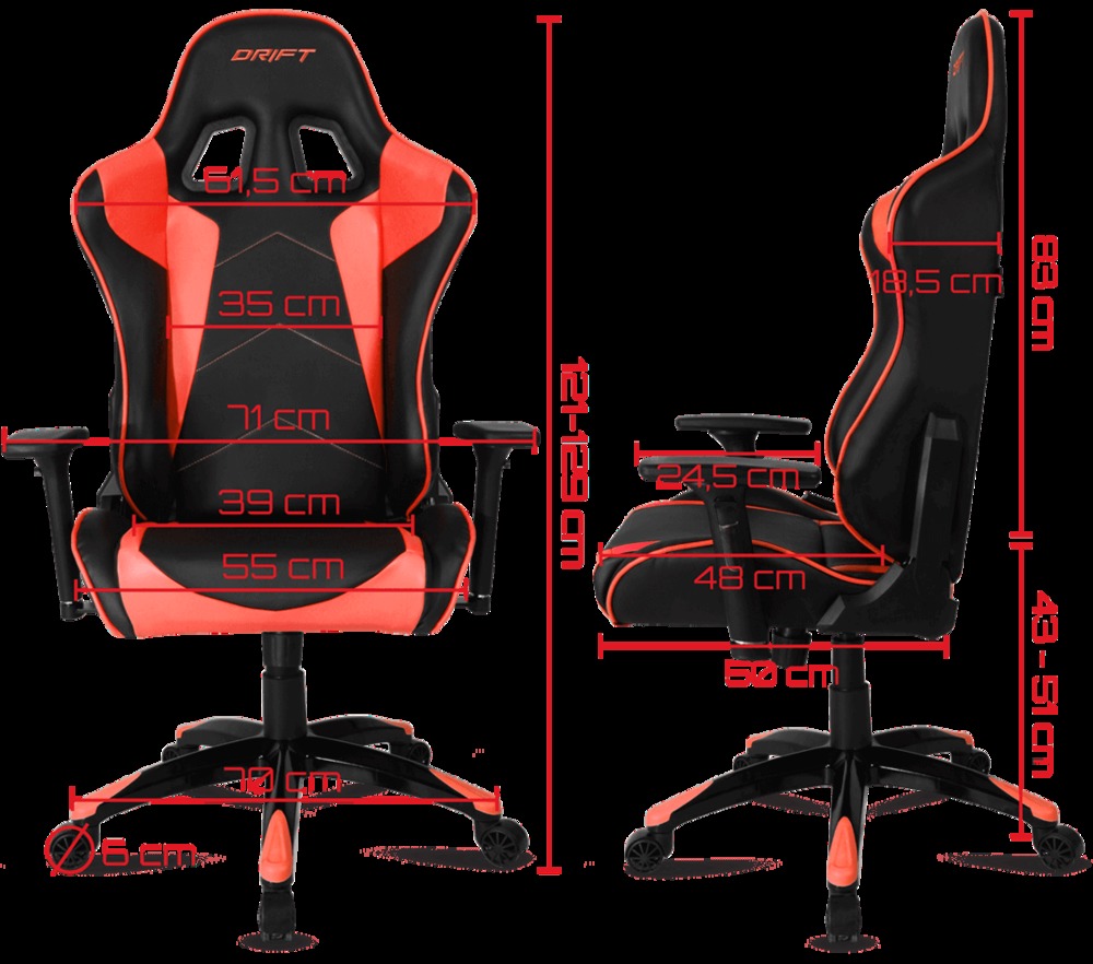 DR300 El mayor confort en tus partidas más intensas Reposabrazos ajustable 3D Configura tu silla para largas partidas sin preocuparte de nada más. Los reposabrazos de la DR300 son ajustables en altura, posición y rotación. Materiales premium Un buen acabado con materiales premium. Las sillas gaming de Drift cuentan con una estructura robusta recubierta de FOAM acolchado y polipiel de primera calidad. Pistón de clase 4 Las sillas Drift vienen equipadas con un pistón de gas, que aporta una gran estabilidad en todas las posiciones. Ruedas y base de metal Una base de metal en forma de estrella sobre ruedas de goma de gran calidad, dan como resultado una gran estabilidad y un deslizamiento ultrasuave. Cuenta con acabados en el color del resto de la silla. Asiento basculante Se adapta a tu centro de gravedad. En los productos Drift todos los detalles están pensados para ofrecerte el mayor confort. Altura regulable Con un sólido sistema de pistón de gas, podrás regular la altura más conveniente para tu espacio de juego o trabajo, ajustandola a lo largo de todo el recorrido que permite la silla. Respaldo reclinable Hasta 160 grados de inclinación. Respaldo de estructura firme pero bien acolchado. Para descansar, jugar o trabajar de la manera más cómoda. Cojines lumbar y cervical Las sillas Drift incorporan dos cojines uno para la zona lumbar y otro para la zona cervical, con los que conseguiremos una ergonomía perfecta evitando malas posiciones para nuestra espalda. Disponible en 8 atractivos colores Desde el blanco más puro al rojo más intenso, para que puedas elegir el color que más se adapta a tu estilo de vida.