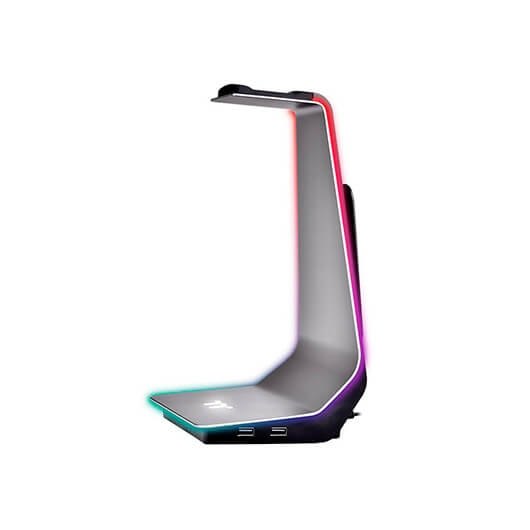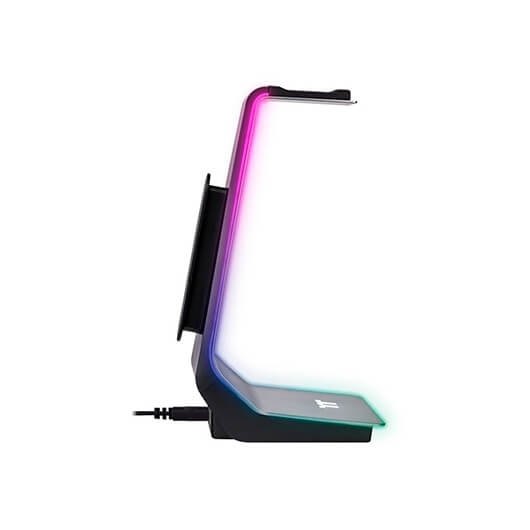 El soporte de auriculares ARGENT HS1 RGB está basado en la construcción de aluminio, con los lados compuestos de iluminación RGB personalizables a través del software del motor iTAKE. El soporte de auriculares también cuenta con un soporte de cable, dos concentradores USB 3.0 y un conector de audio de 3,5 mm para una acción plug and play sin problemas. Compatible con todos los auriculares, no se requiere montaje. 16.8M iluminación RGB SIDE GLOW con 8 efectos de iluminación dinámicos personalizables para las jugadas más personalizadas. Construcción de aluminio duradera con cabezal y base de goma para una colocación estable de los auriculares. Cuenta con dos concentradores USB 3.0 y un conector de audio de 3,5 mm. Conecte dispositivos compatibles con USB y auxiliares al soporte de auriculares para mayor comodidad. Coloca los cables de los auriculares detrás del soporte de auriculares ARGENT HS1 RGB para lograr la simplicidad visual.