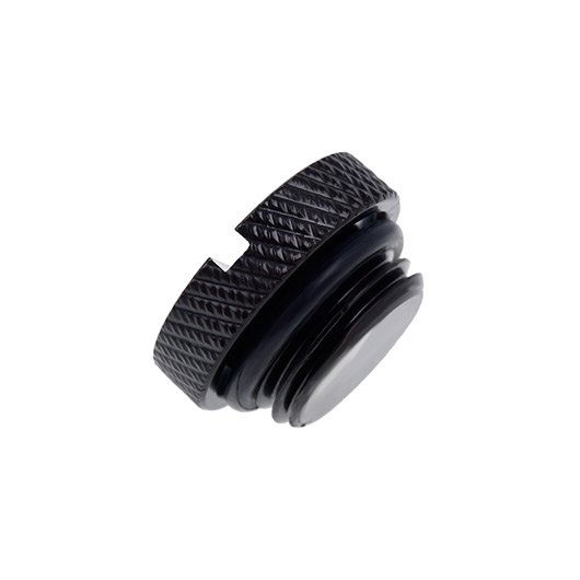 Este tapón de rosca se adapta a todas las aberturas de ¼. La rosca del tornillo se mantiene corta y no presenta peligro de ser enroscada demasiado lejos.