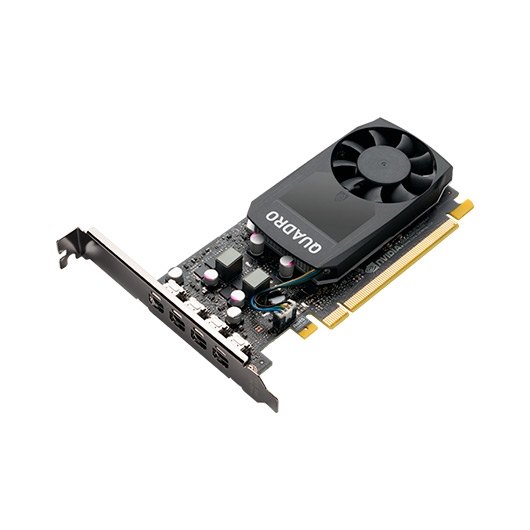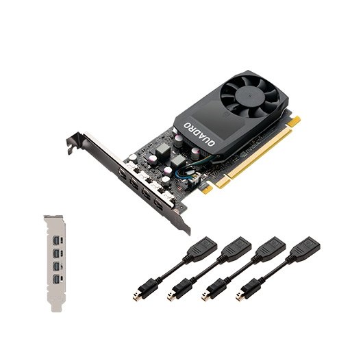 Las tarjetas Quadro son certificadas con una amplia gama de sofisticadas aplicaciones profesionales, probadas por los principales fabricantes de estaciones de trabajo y soportadas por un equipo, que te da la tranquilidad de concentrarte en hacer tu mejor trabajo. Ya sea que desarrolles productos revolucionarios o cree historias visuales espectacularmente vívidas, Quadro te ofrece el rendimiento para lograrlo con creces. La Quadro P1000 combina una GPU Pascal con 640 Núcleos CUDA, amplia memoria y avanzadas tecnologías de visualización para ofrecer un asombroso rendimiento en una extensa gama de flujos de trabajo profesionales. 4 GB de memoria ultrarápida de la GPU hace que sea fácil manejar modelos 2D y 3D complejos y el factor de forma de ranura única, bajo perfil que la hacen compatible incluso con gabinetes con las mayores restricciones de tamaño y de energía. Soporte para cuatro pantallas de 4K (4096 x 2160 @ 60Hz) con el color HDR te da un espacio de trabajo visual amplio para ver tu trabajo en muy alta resolución.