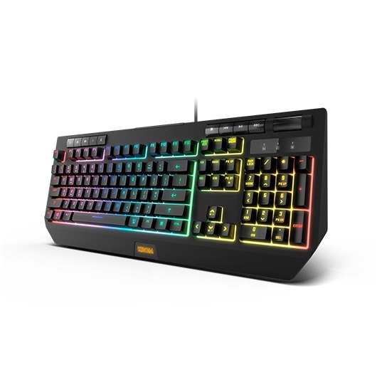 Krom Kuma presenta un robusto diseño con interruptores híbridos que te brindan una respuesta táctil precisa y un nivel superior de confort y agilidad, ya que requiere un menor esfuerzo en la pulsación. El aliado perfecto para largas sesiones de juego. Un teclado híbrido que combina lo mejor de ambas arquitecturas: un diseño compacto con pulsaciones prácticamente silenciosas en un mecanismo que replica el feeling y el corto tiempo de respuesta propio de los teclados mecánicos. Hasta 16,8 millones de colores en un espectáculo de luces que harán las delicias de cualquier set-up, sobre todo de aquellos entusiastas de las partidas nocturnas, donde podrán identificar sin problema cada tecla, ya que Kuma permite además regular la velocidad e intensidad de la iluminación con una sencilla combinación de teclas. Posee 115 teclas, entre las que figuran 9 teclas multimedias dedicadas y una rueda de volumen, función anti-ghosting (hasta 25 teclas simultáneamente) y gaming mode (bloqueo de la tecla windows). Además, para que todo lo tengas a mano y no pierdas de vista la partida, Kuma posee un soporte retráctil para smartphones para que puedas alojar lo más importante en el mismo ángulo de visión.