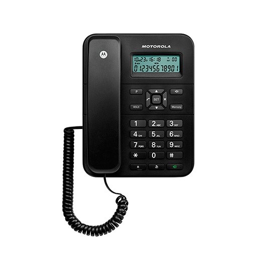 El teléfono fijo Motorola CT202 ofrece la simplicidad de un teléfono fijo y la comodidad de un manos libres. Podrás ver en todo momento quién está llamando gracias a su gran pantalla con identificador de llamadas.