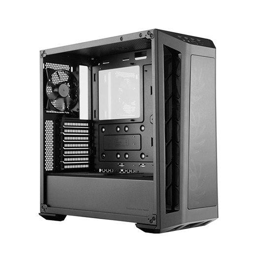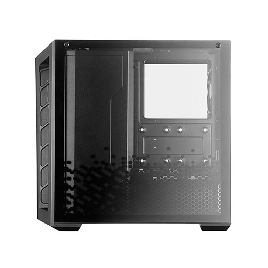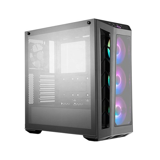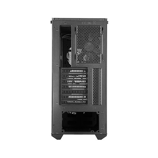 El panel frontal y lateral ofrece una vista clara de los ventiladores frontales la configuración del sistema, mientras que el panel trasero de la placa base está modelado con vidrio templado para ocultar el lado abierto de la fuente de alimentación. Sincroniza la iluminación direccionable RGB en el botón de encendido y los ventiladores conectando el cable ARGB del panel E/S al divisor ARGB incluido de 2 a 3. Certificado compatible con: placa base ASUS, Gigabyte, MSI y ASRock para un sistema de iluminación completo. Una cubierta de fuente de alimentación, una cubierta de cable y 18-25 mm de ancho de espacio detrás de la placa base brindan opciones para mantener el sistema limpio a la vista. Los cables GFX también se pueden enrutar directamente a través de la arandela de goma de la cubierta de la fuente de alimentación. La carcasa del MasterBox MB530P admite disipadores de CPU de hasta 165 mm de altura, tarjetas de gráficos de hasta 410 mm de longitud y fuentes de alimentación de hasta 180 mm de longitud.