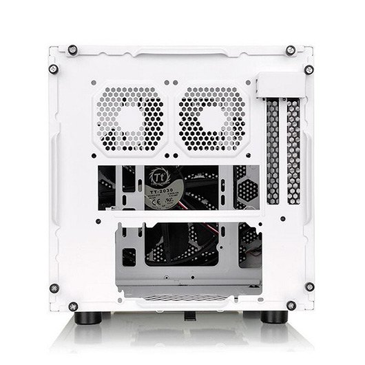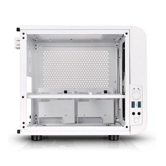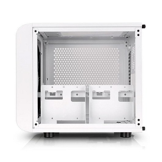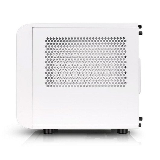 El Nuevo Core V1 representado por Thermaltake es un pequeño y atractivo chasis basado en el diseño de las ITX, con un ventilador de 200 mm en la parte frontal. Los paneles inteligentes intercambiables de los laterales permiten a los usuarios darles la vuelta para mostrar una refrigeración líquida superior o un flujo de aire magnífico, lo que permite al usuario realizar su propia instalación personal. Así, no solo tienes garantizado un mini-sistema increíblemente potente, ¡sino que también tienes la habilidad de hospedar distintos componentes de overcloking para mantenerlos a temperaturas bajas! El Core V1 ha sido diseñado para ser compatible con los sistemas de juego de gama alta, de este modo, los usuarios pueden instalar fácilmente hasta cuatro dispositivos de almacenamiento con bastidores de dispositivos modulares, un slot de expansión GPU dual con una longitud de hasta 260 mm, un disipador de CPU para torres con una altura de hasta 140 mm, junto con una fuente de alimentación de alta potencia de una longitud de hasta 180 mm. Con todo lo mencionado, ¡Aun sobran 80mm de espacio para el manejo de cables! Con una capacidad de refrigeración prometedora, el Core V1 tiene diversos puntos de montaje para soportar todos los sistemas de refrigeración, en los cuales se incluyen sistemas de refrigeración líquidos y unidades de refrigeración por aire DIY/AIO. Un vasto ventilador de 200 mm está preinstalado en la parte frontal, junto con 2 turbo-ventiladores de 80 mm en la parte trasera, garantizando el soporte de cualquier sistema de juegos. El Core V1 está dividido en 2 cámaras principales: la cámara superior está hecha para obtener un gran rendimiento y eficiencia en la refrigeración, mientras que la cámara inferior está hecha para el manejo de cables. Gracias a los bastidores de dispositivos de discos duros de 2.5”/3.5” desmontables, los usuarios pueden disfrutar de la libertad de ganar el máximo espacio interior posible para el rendimiento de la refrigeración, o para la configuración del sistema de conducción del líquido refrigerante.