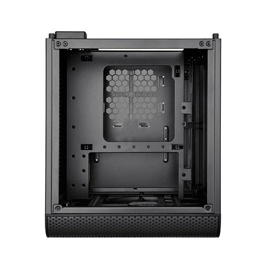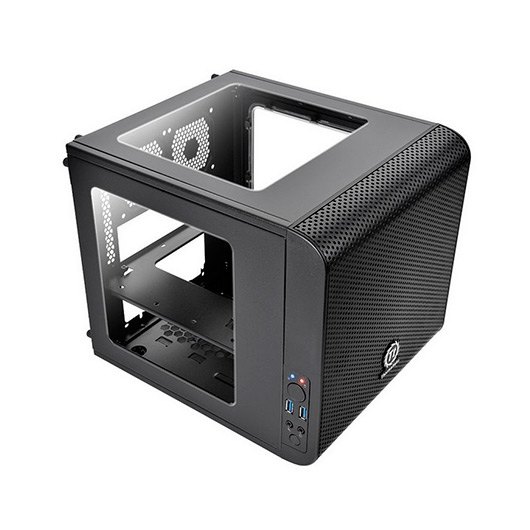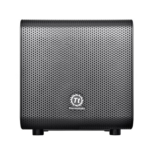 El Nuevo Core V1 representado por Thermaltake es un pequeño y atractivo chasis basado en el diseño de las ITX, con un ventilador de 200 mm en la parte frontal. Los paneles inteligentes intercambiables de los laterales permiten a los usuarios darles la vuelta para mostrar una refrigeración líquida superior o un flujo de aire magnífico, lo que permite al usuario realizar su propia instalación personal. Así, no solo tienes garantizado un mini-sistema increíblemente potente, ¡sino que también tienes la habilidad de hospedar distintos componentes de overcloking para mantenerlos a temperaturas bajas! El Core V1 ha sido diseñado para ser compatible con los sistemas de juego de gama alta, de este modo, los usuarios pueden instalar fácilmente hasta cuatro dispositivos de almacenamiento con bastidores de dispositivos modulares, un slot de expansión GPU dual con una longitud de hasta 260 mm, un disipador de CPU para torres con una altura de hasta 140 mm, junto con una fuente de alimentación de alta potencia de una longitud de hasta 180 mm. Con todo lo mencionado, ¡Aun sobran 80mm de espacio para el manejo de cables! Con una capacidad de refrigeración prometedora, el Core V1 tiene diversos puntos de montaje para soportar todos los sistemas de refrigeración, en los cuales se incluyen sistemas de refrigeración líquidos y unidades de refrigeración por aire DIY/AIO. Un vasto ventilador de 200 mm está preinstalado en la parte frontal, junto con 2 turbo-ventiladores de 80 mm en la parte trasera, garantizando el soporte de cualquier sistema de juegos. El Core V1 está dividido en 2 cámaras principales: la cámara superior está hecha para obtener un gran rendimiento y eficiencia en la refrigeración, mientras que la cámara inferior está hecha para el manejo de cables. Gracias a los bastidores de dispositivos de discos duros de 2.5”/3.5” desmontables, los usuarios pueden disfrutar de la libertad de ganar el máximo espacio interior posible para el rendimiento de la refrigeración, o para la configuración del sistema de conducción del líquido refrigerante.