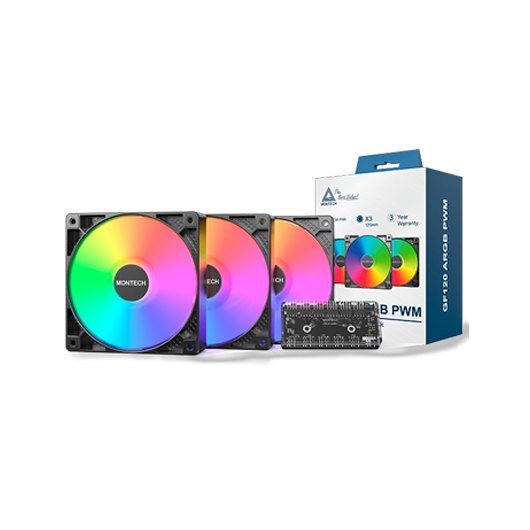VENTILADOR 120X120 MONTECH GF120 PWM BLACK PACK 3 + HUB 120MM ARGB 1600RPM PWM